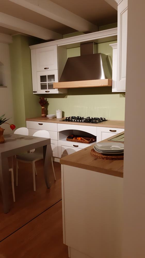Cucina patinata dal gusto classico ma allo stesso tempo molto "fresca" nei suoi abbinamenti cromatici. Domina la composizione la grande cappa centrale con massello di rovere naturale. N.B. SONO ESCLUSI : FRIGO, FORNO, PIANO COTTURA, LAVASTOVIGLIE, TAVOLO, SEDIE, TRASPORTO E MONTAGGIO