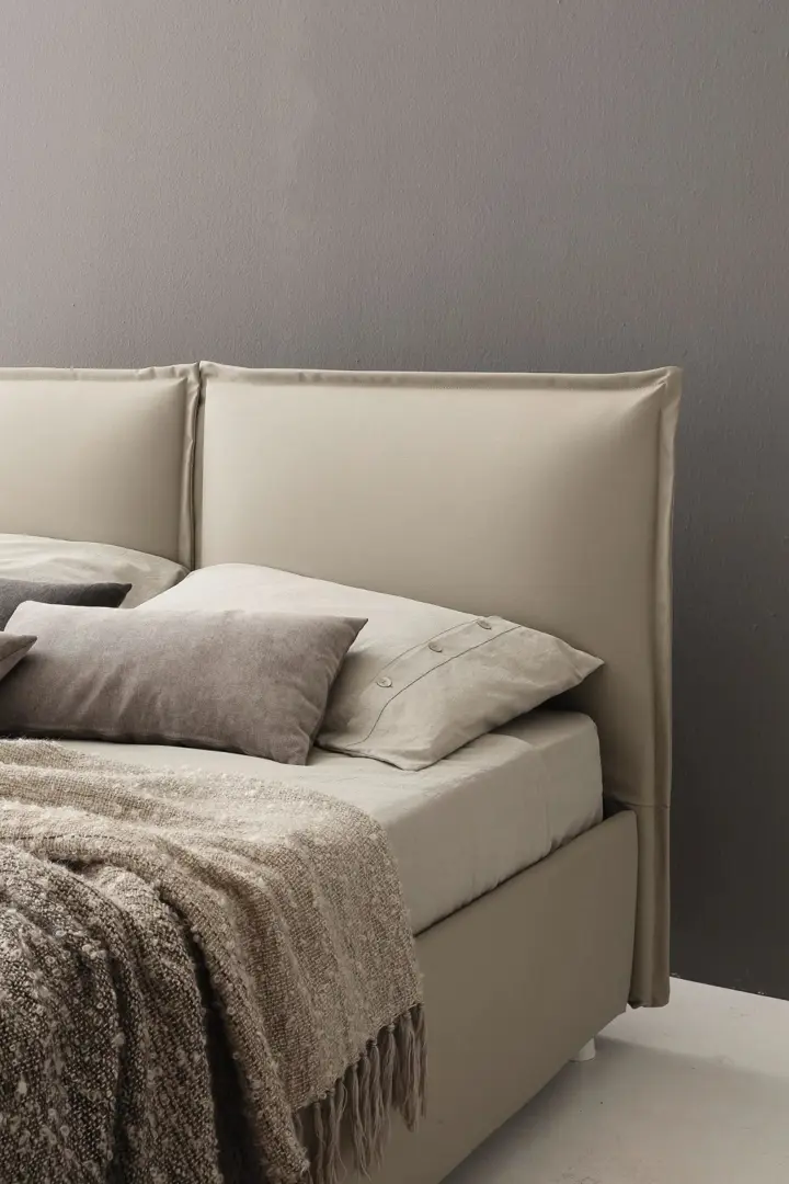 Denise è un letto matrimoniale dalla linea morbida e accogliente, caratterizzato da una testiera con due cuscini imbottiti che offrono sostegno e comodità. Le cuciture a vista e i volant aggiungono un tocco sartoriale e decorativo al design. Il giroletto imbottito è disponibile in versione a fascia alta o bassa e può integrare un pratico box contenitore, perfetto per ottimizzare lo spazio in camera da letto. Una proposta elegante, funzionale e facilmente personalizzabile. Il letto Denise fa parte della collezione Night Selection, una linea che combina essenzialità e cura dei dettagli, con soluzioni pensate per garantire comfort e qualità nel tempo. Le testiere, disponibili in cinque varianti, si abbinano a giroletti e piedini in diverse finiture. Tre le misure disponibili: singolo, una piazza e mezza e matrimoniale. Completano la proposta reti ergonomiche, contenitori capienti e tessuti resistenti, selezionati per durare e mantenere intatto lo stile nel tempo.