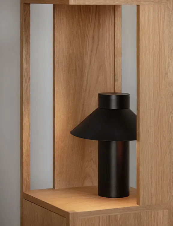 La lampada Riscio, ideata nel 1968 dall'architetto e designer italiano Joe Colombo, incarna la sua visione di un design democratico e funzionale, pensato per adattarsi a molteplici utilizzi a beneficio dell'utente. Colombo, sempre all'avanguardia, sfruttava materiali emergenti e le più recenti tecnologie per creare "macchine per vivere" futuristiche, molte delle quali sono diventate icone di un nuovo modo di abitare. Questa lampada da tavolo è realizzata in alluminio con verniciatura a polvere, disponibile in diverse varianti cromatiche, tra cui rosso giapponese, bianco e blu, permettendo una personalizzazione che si adatta a vari ambienti e stili d'arredo. Le dimensioni compatte la rendono ideale per spazi ridotti o come punto luce aggiuntivo. Il dimmer integrato consente una regolazione continua dell'intensità luminosa tramite un interruttore touch, garantendo un controllo preciso dell'atmosfera desiderata.