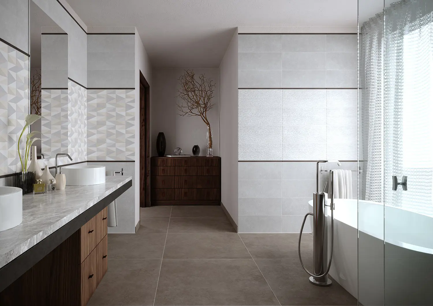 Dust di Herberia Ceramiche è un rivestimento in pasta bianca che reinterpreta l’effetto spatolato del cemento con un’estetica leggera e raffinata. Le superfici opache, attraversate da sfumature delicate, conferiscono luminosità e profondità alle pareti, creando ambienti contemporanei e rilassanti. Il formato 20x50 cm, pratico e versatile, si presta a pose lineari o sfalsate, adattandosi perfettamente a bagni, cucine e zone living. La palette cromatica comprende Bianco, Beige e Grigio: tonalità neutre e sofisticate, perfette da abbinare a legni chiari, metalli satinati o complementi minimal. La collezione include la struttura tridimensionale Line, che dona movimento visivo, e un mosaico 30x30 cm per dettagli decorativi o inserti eleganti. Dust è facile da pulire e resistente ai principali agenti chimici domestici, unendo bellezza materica e funzionalità. Herberia Ceramiche realizza collezioni che coniugano tecnologia e cura estetica, offrendo rivestimenti versatili, eleganti e capaci di arricchire ogni ambiente.