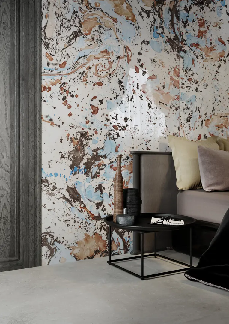 Araldica di CEDIT – marchio di Florim – nasce dalla collaborazione con Federico Pepe e trasforma la superficie ceramica in un campo espressivo libero e visionario. La collezione si ispira alle carte marmorizzate storiche, riprendendone le dinamiche fluide e le stratificazioni cromatiche in chiave contemporanea. Le basi monocromatiche – azzurro, blu, corallo e grigio – dialogano con la variante cemento, neutra e materica. Ogni lastra propone un'estetica liquida e in movimento, pensata per spazi architettonici che accolgono l’irregolarità come valore compositivo. I motivi decorativi “Blasone” e “Triangoli” introducono elementi grafici iconici, suggerendo riferimenti all’araldica e alla simbologia. Le superfici, proposte in grande formato, sono pensate per rivestimenti interni, con uno spessore sottile che ne favorisce la leggerezza progettuale. CEDIT – Ceramiche d’Italia, brand di Florim, promuove la cultura del design italiano attraverso collezioni firmate da autori. Ogni progetto unisce ricerca visiva, tradizione artistica e sperimentazione contemporanea.