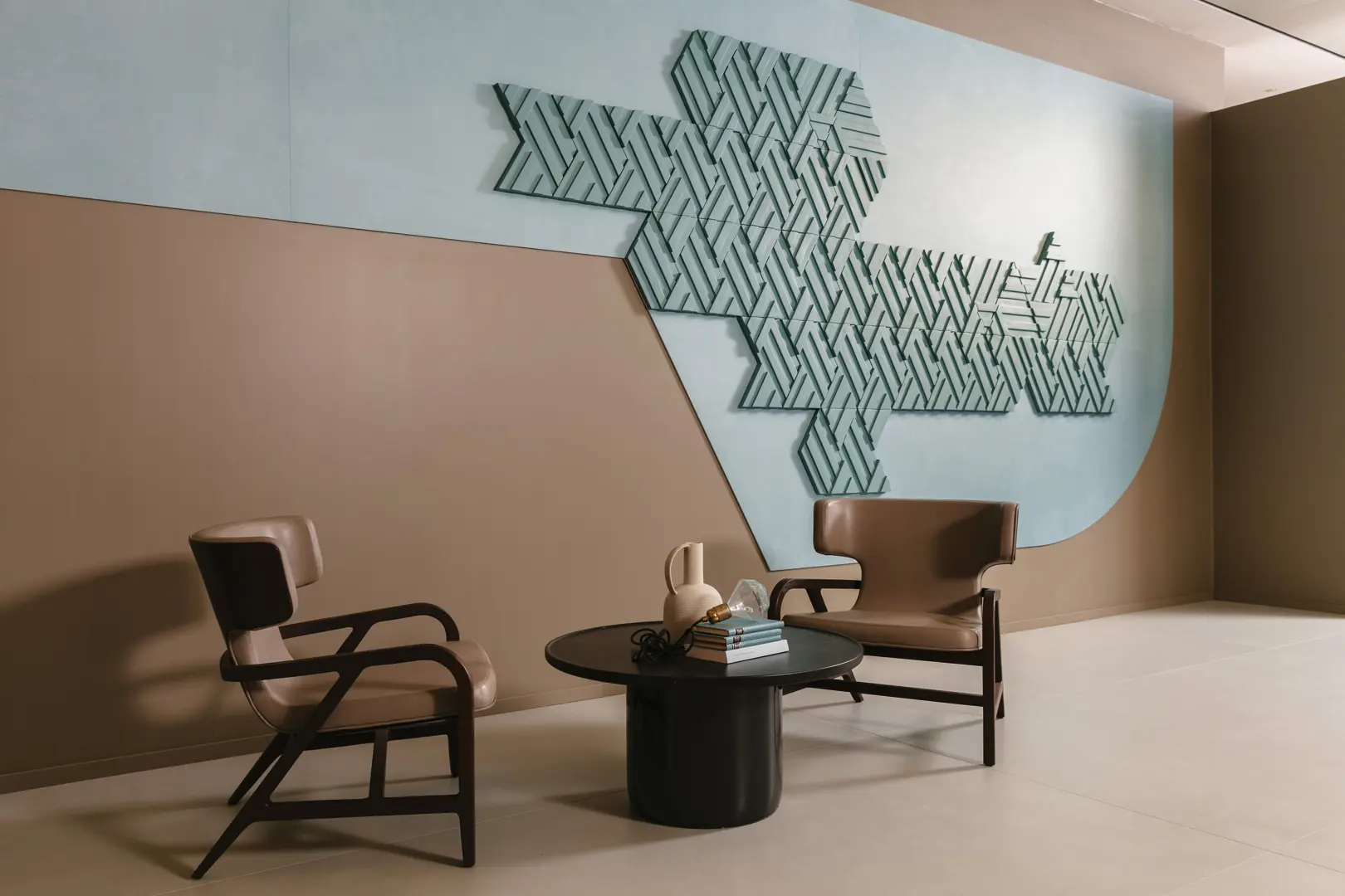 Rilievi di CEDIT, firmata dallo studio Zaven, è una collezione che combina superfici in gres porcellanato con volumi ceramici applicati, generando composizioni tridimensionali capaci di trasformare le pareti in installazioni architettoniche. Le lastre, disponibili in diverse tonalità opache ispirate alla natura — come Salvia, Lido, Terra o Cielo — fungono da fondali cromatici per forme geometriche in rilievo. Gli elementi applicati, di diversa forma e spessore, giocano con la luce e producono effetti visivi dinamici, in continua evoluzione durante la giornata. La collezione richiama le sperimentazioni artistiche del design italiano anni ’60 e ’70, reinterpretate con un approccio modulare e contemporaneo. Le combinazioni possibili rendono ogni applicazione unica, permettendo un alto grado di personalizzazione in contesti residenziali o pubblici. CEDIT – Ceramiche d’Italia, brand di Florim, promuove collezioni che nascono dal dialogo tra progettisti e industria, unendo innovazione ceramica e visione culturale in superfici di nuova generazione.